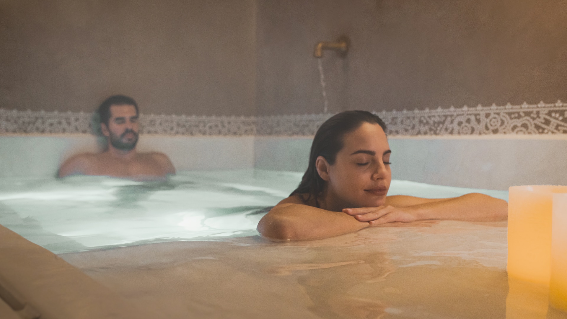 Relajación integral: Los vapores del hammam no solo calman la mente, sino que también relajan profundamente la musculatura, aliviando tensiones acumuladas.