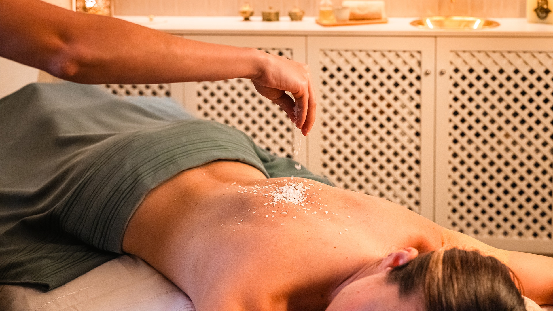 Una exfoliación profunda a base de piedra de Alumbre, aceite de almendras, miel y jalea real para tonificar y revitalizar la piel, seguido de un relajante y hidratante Masaje Oriental de 30′. Devuelve la firmeza y luminosidad a la piel en un momento de relajación para cuerpo y mente